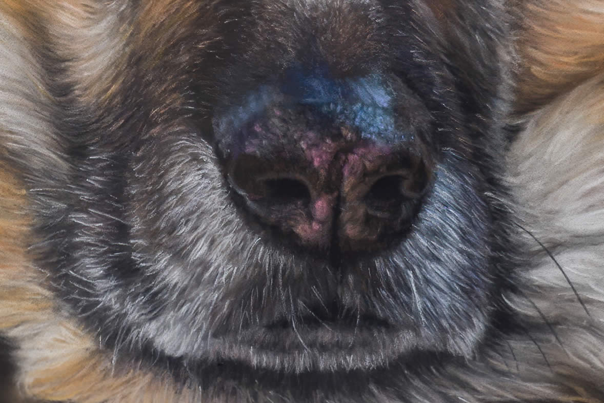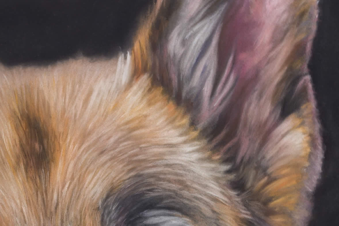 The image of Ben was quite small on the photo, it was enlarged and reprocessed. The background replaced with a simple, complimentary fill and some fur work added to replace the arms of the owner.